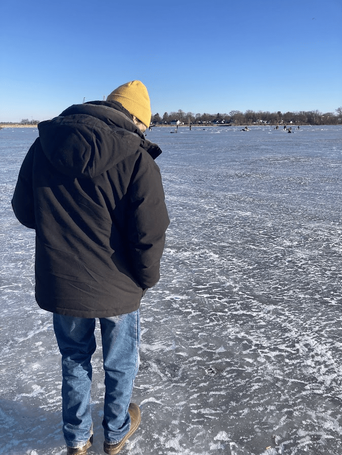 While this cold was new to me, the people of Madison have no problem with it and continue their usual outdoor activities. My friend Dan came up to visit and we walked out onto one of the frozen lakes and got to see some good old ice fishing action.