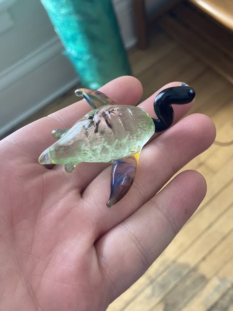 After some struggle, I was able to get some gear set up so that I could continue to work with glass. This turtle is my first piece from the new studio setup.