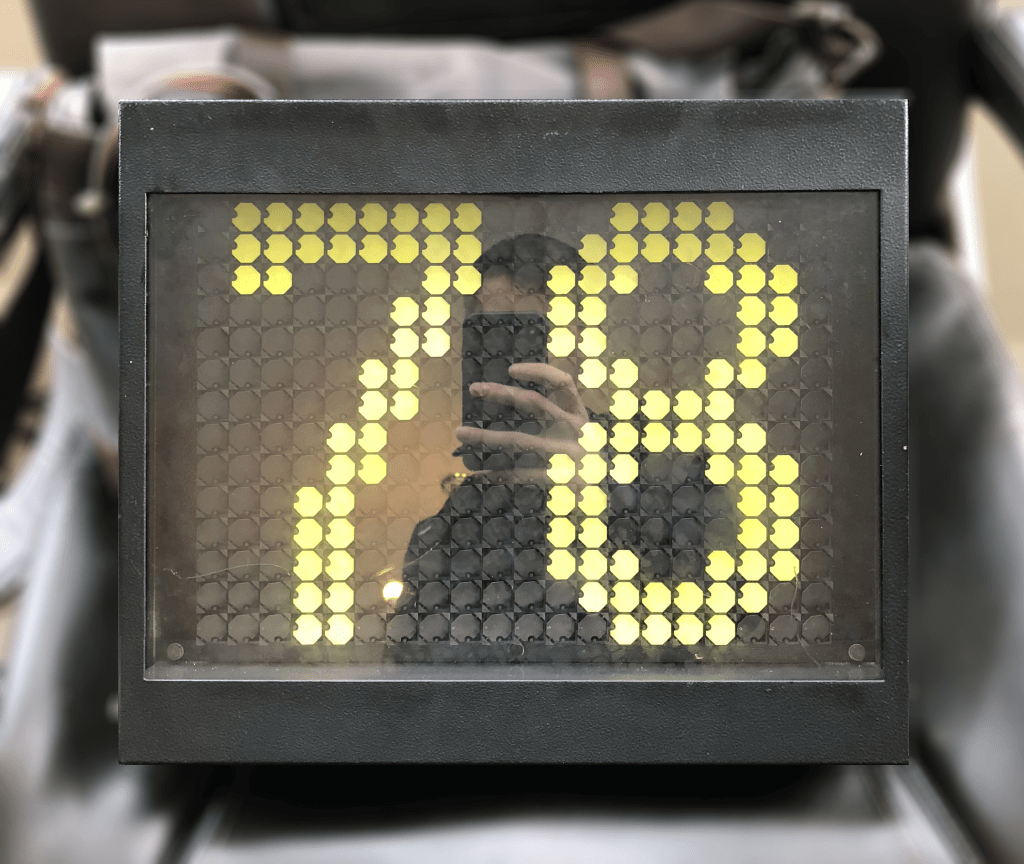 For those who are not familiar with how these signs operate, the “pixels” are magnetic dots – one side black, one side yellow- that flip depending on the polarization of the magnet behind them.